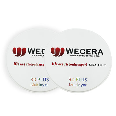 Wecera 3D Plus Multilayer Zirconia Block terbuat dari bubuk zirkonia nano biologis 100% dari Tosoh dengan Cold IsostaticPteknologi produksi ressing, Ini adalah zirkonia paling alami di pasar, Ini berubah warna, kekuatan, dan tembus pandang secara bertahap dari bagian serviks ke insisal pada satu cakram zirkonia.