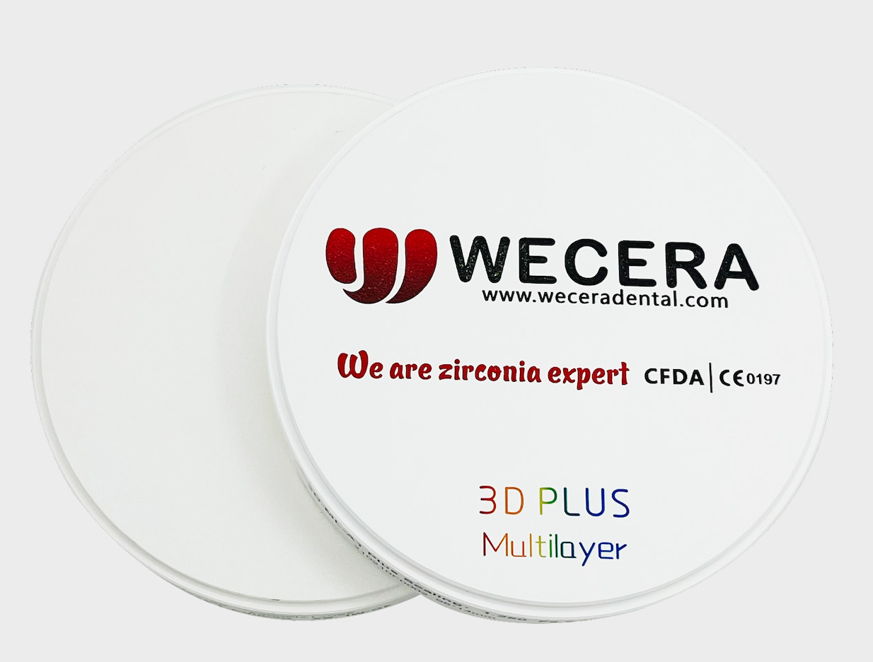 WECERA proudly presents the 3D Plus Multilayer, a premium 3D Multilayer Zirconia product designed specifically for dental milling centers. Crafted in CHINA, this advanced material features a sophisticated Three-Dimensional Zirconia Structure that ensures superior strength and aesthetics for dental restorations.
